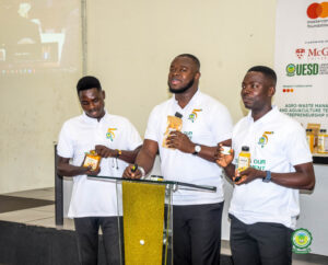 The award-winning team, Aaron Tawiah Blagodzi (BSc. Energy and Resource Economics), Benjamin Ansu Anyame (BSc. Sustainable Development), and Godson Etsri (BSc. Energy Sustainability)-distinguished themselves among a highly competitive pool of global finalists to secure the top prize.